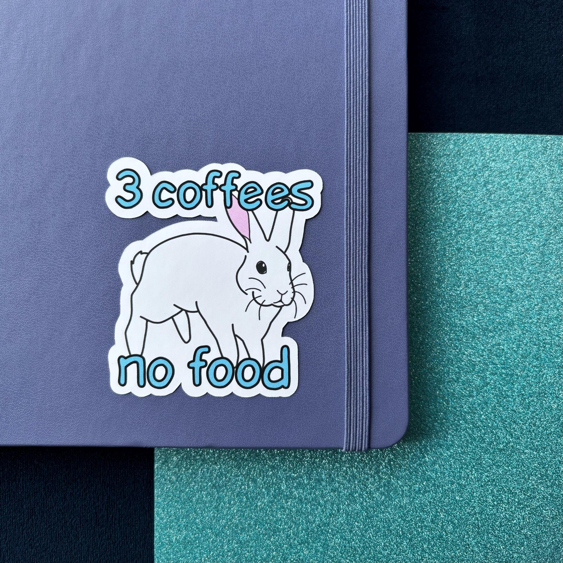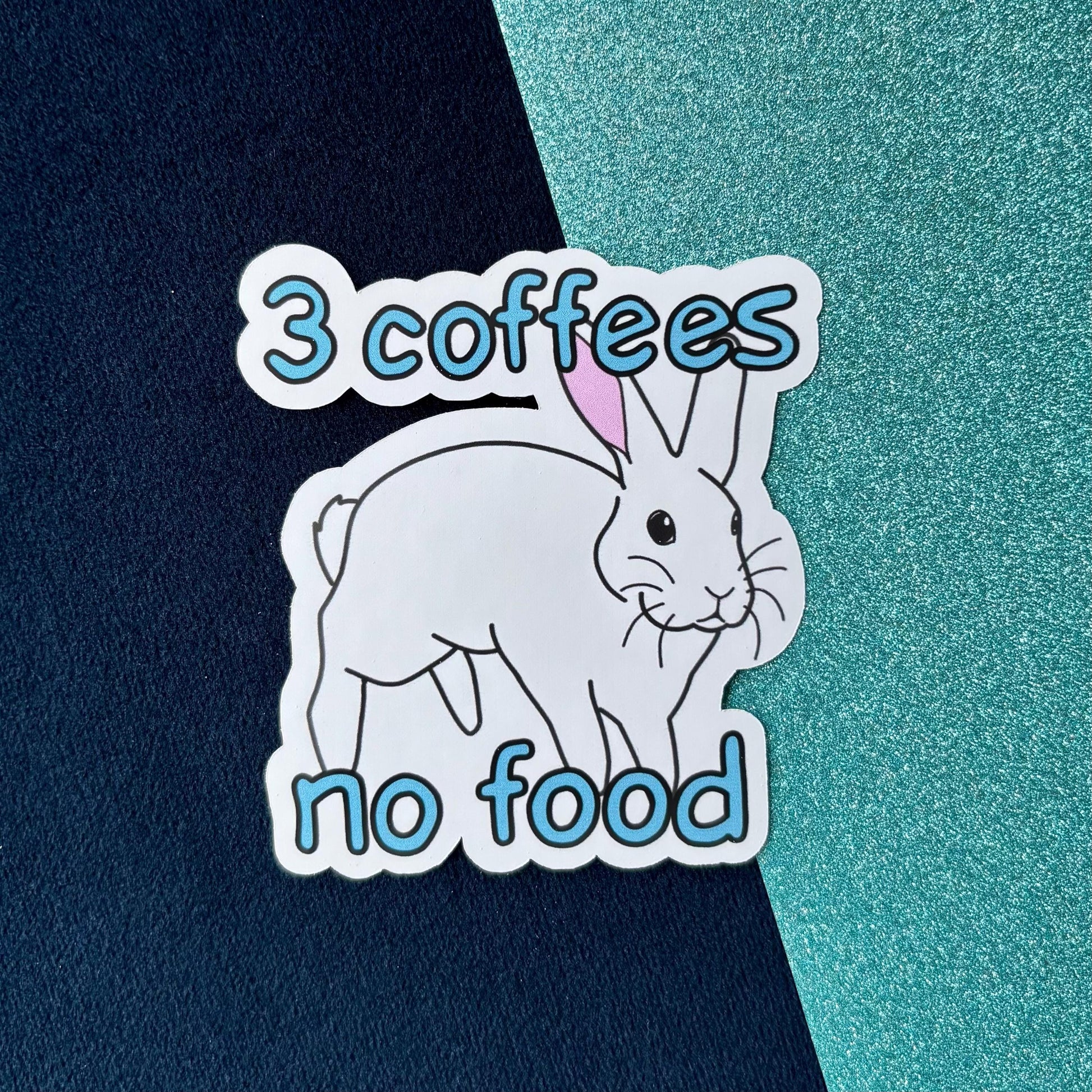 White Rabbit Meme '3 Coffees No Food' Comic Sans Vinyl Sticker